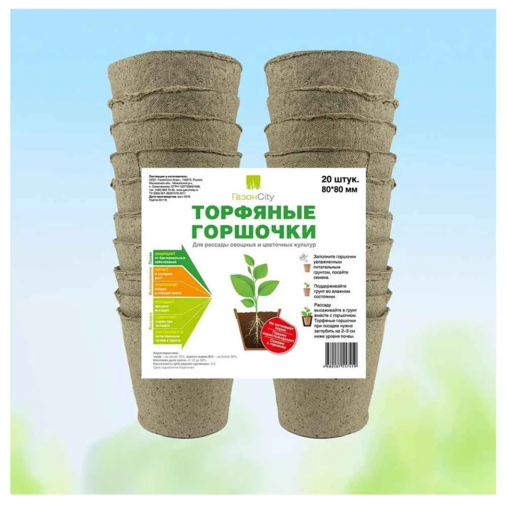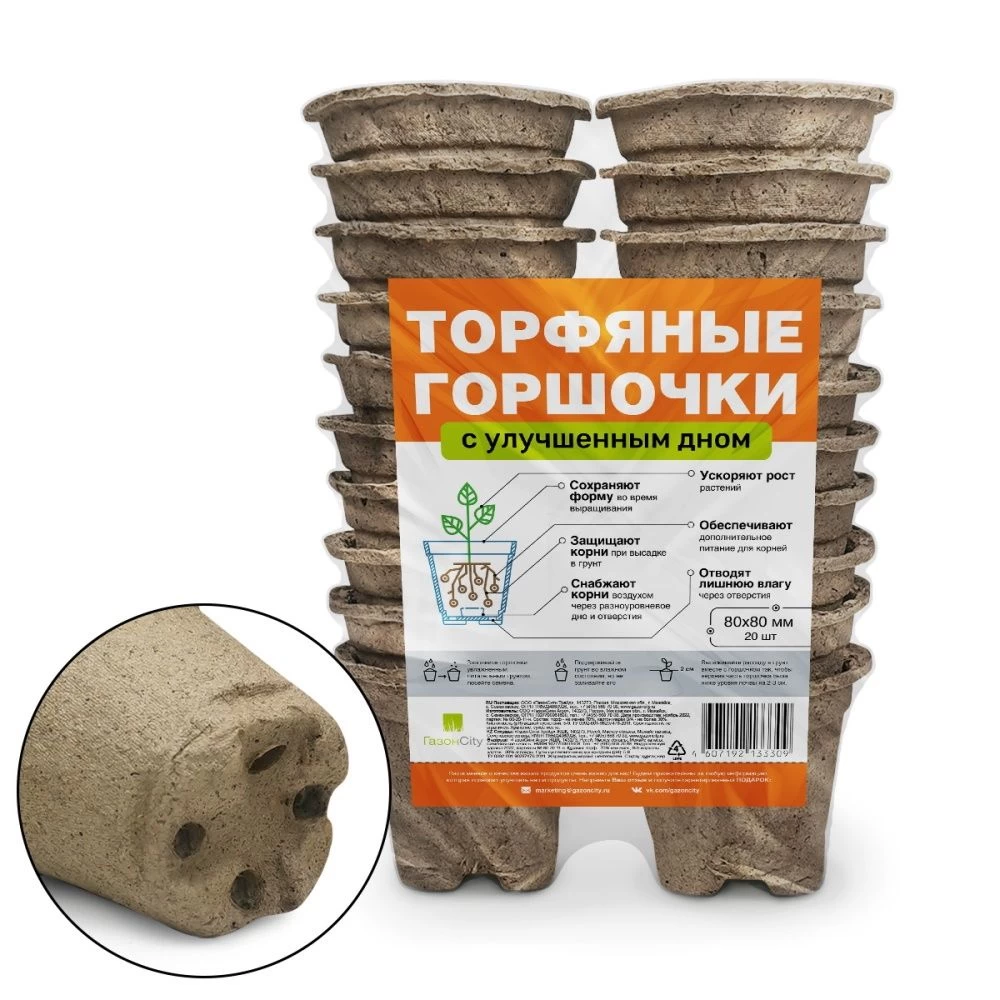 Торфяные горшочки упаковка 20шт d80мм h80мм с улучшенным дном (ГС)